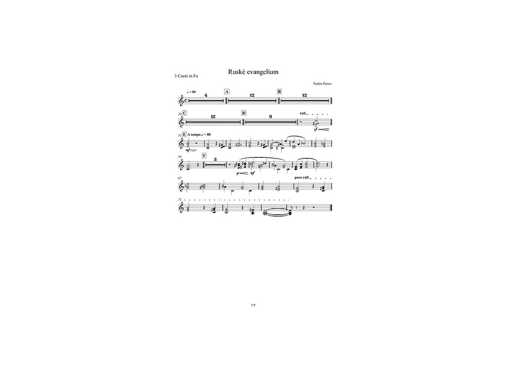 Corni in Fa, Coro misto, Pianoforte, Arpa, Triangolo, Piatto Sospeso, Violino Solo, Violini I, Violini II, Viole, Violoncelli, Contrabassi
