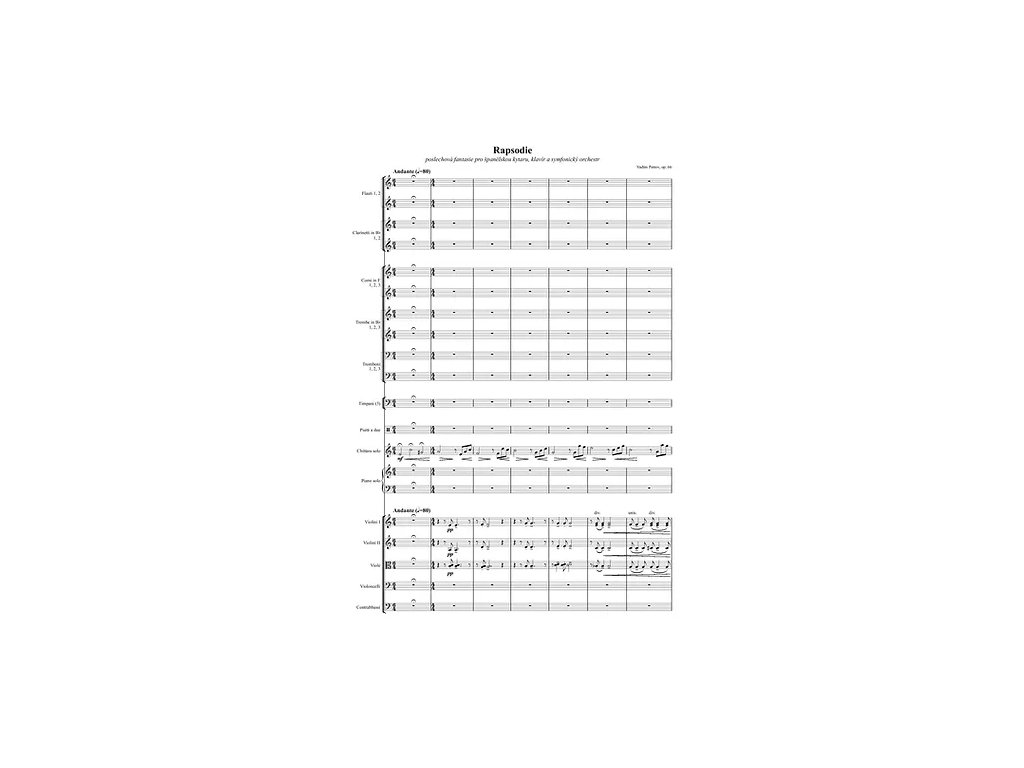 Flauti, Clarinetti in Bb, Corni in F, Trombe in Bb, Tromboni, Timpani, Piatti a due, Chitarra Solo, Pianoforte Solo, Violini I, Violini II, Viole, Violoncelli, Contrabbassi.